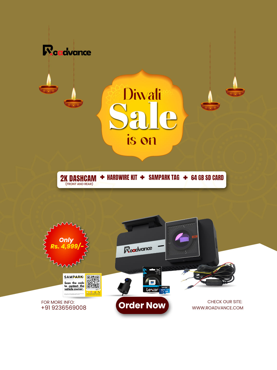 Diwali Sale is ON! 2K Dual Dash Cam Front & Rear | H.265 Compression, 256GB Support, Seamless Loop Recording, in Built wifi, App support