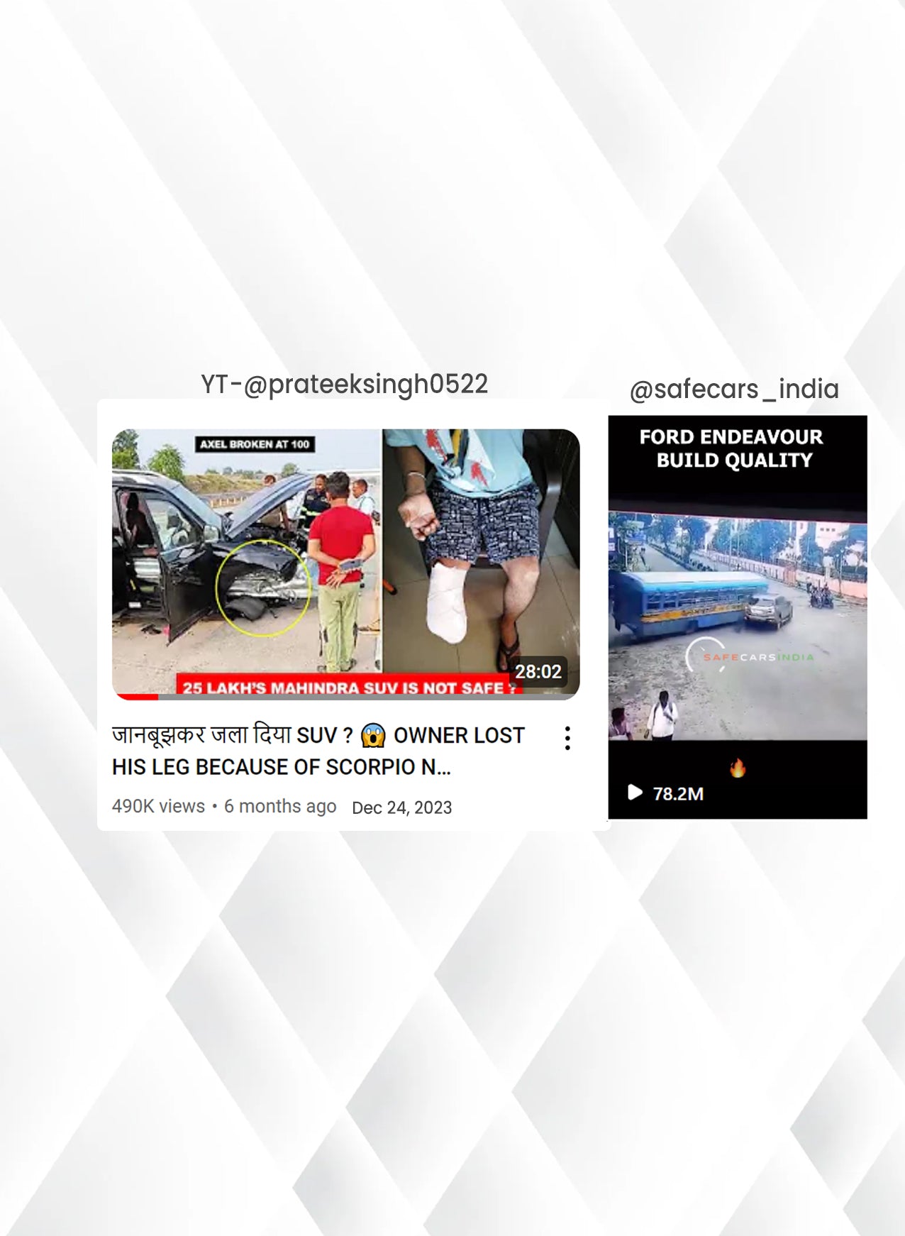Both are among the most viewed videos of the year. In one video, we showcase the strong build quality of the Ford Endeavour, and in the other, we highlight the unacceptable behavior from Mahindra that led to a person becoming disabled and losing almost everything